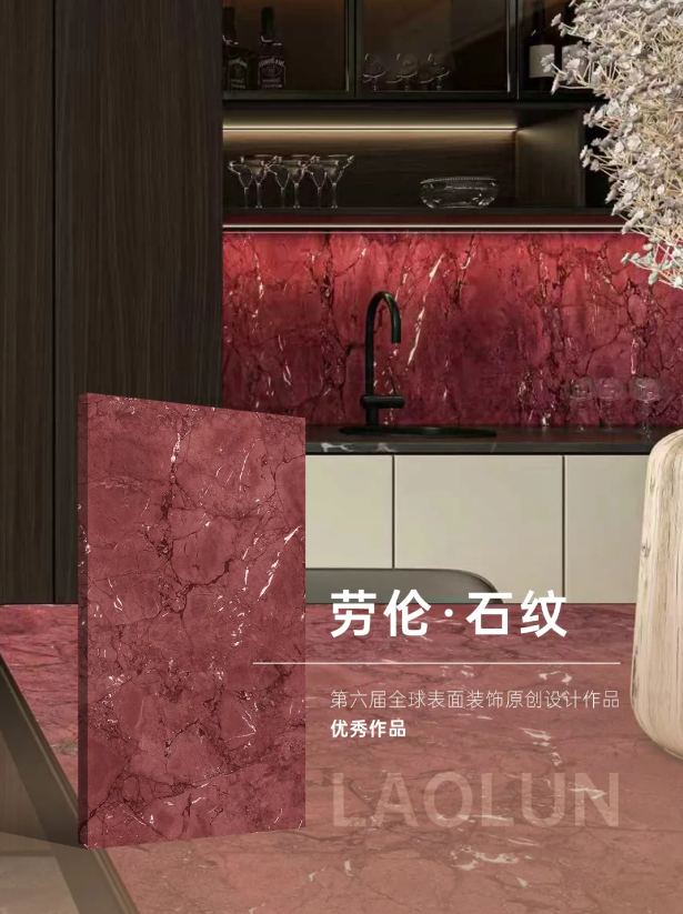 劳伦·石纹设计灵感源自亿万年地质形成的大理石,并将璀璨星河般的宏大意境完美融入底色。其花纹的独特优势,正是斩获“优秀作品”荣誉的核心所在。画面中,天然石材的肌理与人工艺术的巧思激烈碰撞,形成了蜿蜒交错、气势磅礴的流动脉络。这不仅是自然的随机笔触,更是经过精密提炼的美学秩序。每一道纹路都如宇宙星云般神秘深邃,在深邃的底色上延展、流动,创造出无限延伸的视觉张力。细观之下,色泽与纹理的过渡细腻而富有层次,既有泼墨山水的写意磅礴,又不失显微镜下晶体生长的精密质感。这种源于自然却高于自然的表现力,使得“劳伦·石纹”超越了单纯的材质模仿,成为兼具自然造化之奇与人文设计之美的艺术杰作,其独一无二的视觉魅力与艺术价值,荣膺殊荣,当之无愧。