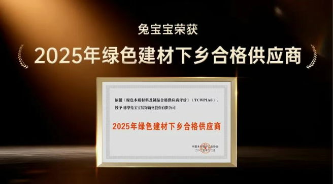 在第十五届中国木材保护大会上,兔宝宝荣获“绿色建材下乡合格供应商”称号。这是兔宝宝长期致力于构建可持续产品体系、完善绿色供应链与深耕下沉市场的必然成果。兔宝宝把“绿色、健康”的理念贯穿于产品研发与制造全过程,陆续推出香氛抑菌板、木素植物胶板材、零醛超净板等创新产品,精准对接市场对环保家居的需求,以产品力引领消费趋势。同时,通过取得“绿色工厂”“绿色供应链管理企业”、FSC认证、产品碳足迹认证、绿色产品认证等一系列权威认可,兔宝宝搭建起行业领先的绿色认证体系,让“绿色”承诺贯穿始终,也为绿色建材下乡提供了可信赖的产品保障。
