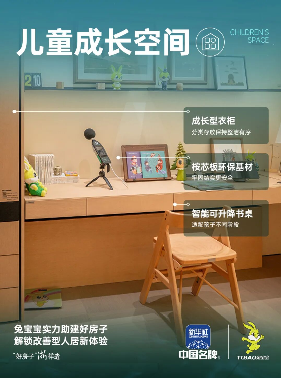 兔宝宝好房子儿童房不仅关注当下的实用与安全,更着眼于未来的成长与变化,让房间真正伴随孩子一起“长大”,在呵护中见证每一个成长瞬间。
