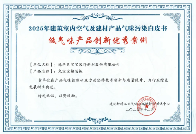 装修过程中挥之不去的刺鼻气味,往往是隐蔽于板材之中的有害物质超标的信号,这对长期居住者的健康构成持续威胁,尤其老人、儿童及孕妇等敏感群体。这一行业痛点,正推动着建材环保标准的升级与技术革新。近日,在2025年建筑材料工业气味与环境评价测试中心专家论坛上,兔宝宝桉芯板凭借技术创新与质量提升,获评“低气味产品创新优秀案例”,为行业绿色发展树立典范。