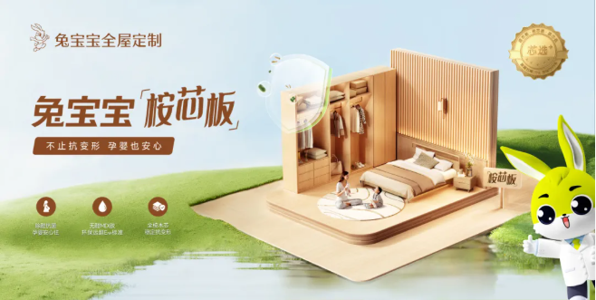 值得一提的是,兔宝宝桉芯板凭借持续的技术创新与扎实的质量提升,荣获“低气味产品创新优秀案例”,为行业绿色转型树立了典范。在浙江省“好房子”展览中,兔宝宝桉芯板全面应用于空间所有柜体,仅用33天便极速建成改善型住房标杆项目。板材以极致的ENF级环保性能筑牢健康底线,让“快速入住”无需牺牲安全,精准契合改善型住房对健康与时效的双重诉求。
