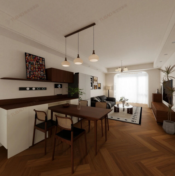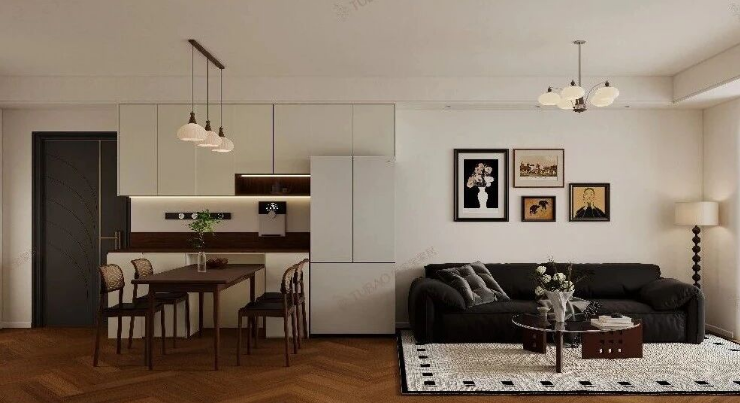 开放式布局让空间不再泾渭分明,每个功能区在各自秩序里默契共存,中古风设计让小家独有的温馨节奏,利落、洒脱,又足够暖。