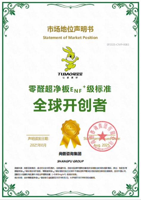 兔宝宝在环保等级升级的道路上一直走在行业前沿。从E0级到ENF级,再到ENF+级,每一次升级都是对环保技术的突破与创新。2024年,兔宝宝重磅推出零醛超净板,创新开发了基材有机硅改性复合树脂表面硬化处理、装饰纸闪蒸薄涂和EB固化技术,采用连续平压辊贴工艺制备零醛超净板,原料及生产工艺全程无甲醛添加,将甲醛释放限量值严控在0.008mg/m³以内,仅为国标ENF级限值的三分之一,真正实现了零醛添加。这一突破性成果不仅让兔宝宝赢得了“ENF+级标准全球开创者”的市场认可,更推动了整个家居建材行业环保标准的飞跃。