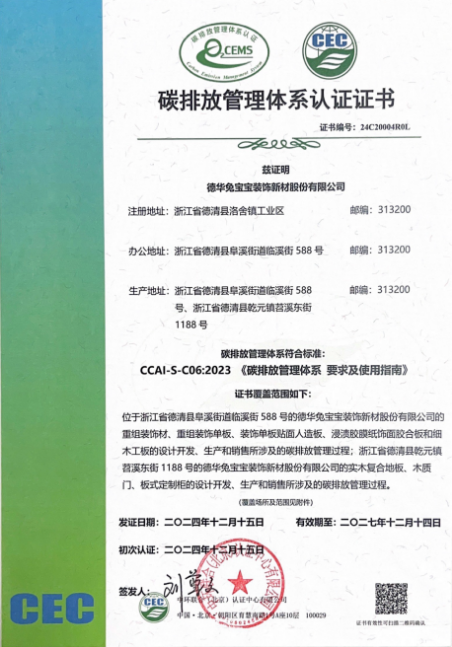 兔宝宝将碳管理提升至战略高度,在体系建设上取得行业突破性进展。公司顺利通过《碳排放管理体系要求及使用指南》标准评审,作为湖州市“双碳”认证绿色家居产业试点,兔宝宝成为行业内首家通过碳排放管理体系认证的企业。同时,作为碳足迹国家创新联盟发起单位,公司率先开展重组装饰材产品碳足迹认证,并持续推进全品类产品碳足迹核查,全面摸清产品全生命周期的碳排放家底,为精准减排奠定科学基础。