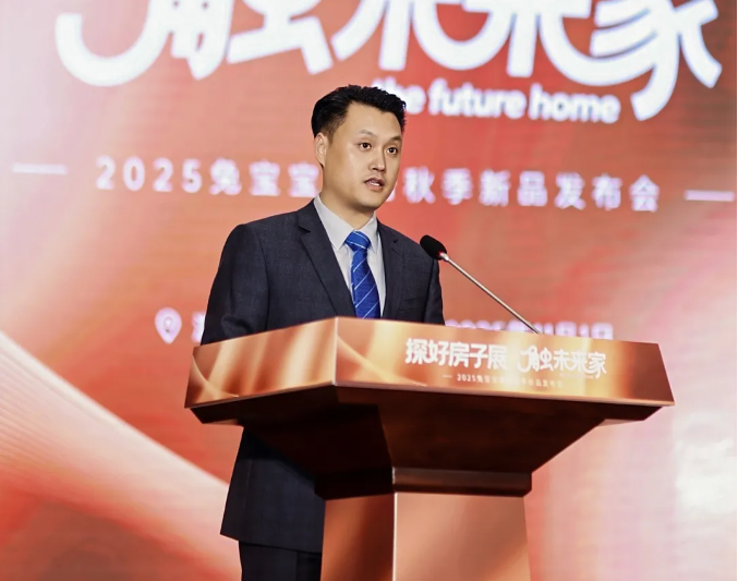 随后,德华兔宝宝家居公司总经理沈怡强发表致辞。他表示,兔宝宝始终秉持“让家更好”的企业使命,不断推进产品升级,本次秋季新品发布会,便是对“安全、舒适、绿色、智慧”好房子理念的深度实践与升维,致力于让更多家庭实现从“有房住”到“住好房”的跨越。