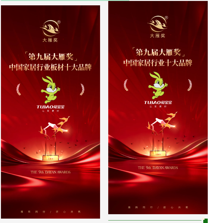 兔宝宝依托自主创新应对行业竞争,通过数智化转型突破传统模式,凭借卓越品质赢得消费者信赖。荣誉背后,是品牌对绿色人居理念的恪守与对产品极致的追求。面向未来,兔宝宝坚守自主创新,洞察并引领消费趋势,助推中国家居产业高质量发展。雁阵同行,匠心共筑,聚力向前。