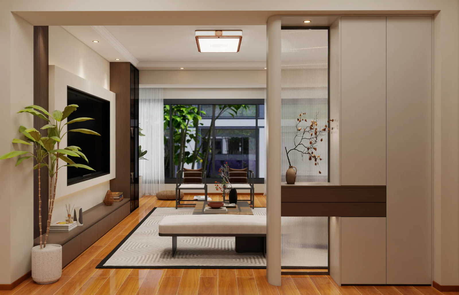 打破以电视为中心的传统格局,让客厅成为宝宝可以自由爬行、玩耍的安全场域,一切设计都以“适童化”为先。