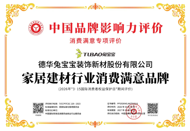 在消费升级与品质导向并行的时代,品牌的口碑与消费者满意度已成为衡量企业综合实力的关键标尺。近日,兔宝宝凭借卓越表现,在中国品牌影响力评价中脱颖而出,荣获“家居建材行业消费满意品牌”称号。这份荣誉不仅是对兔宝宝三十余载深耕行业的肯定,更是行业权威与亿万消费者对品牌实力的双重认可。