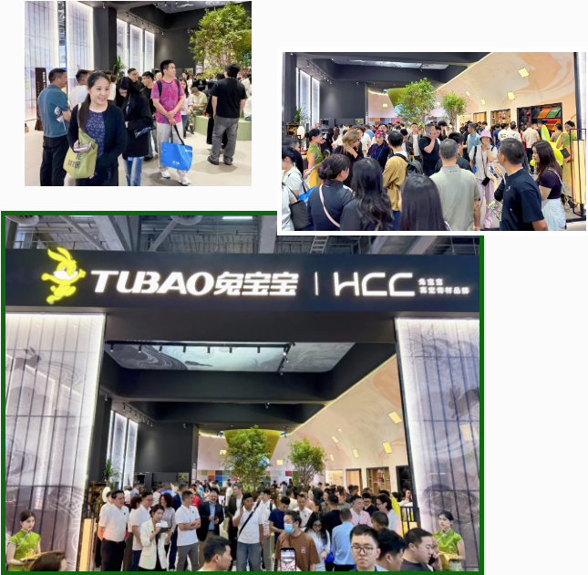 开馆即巅峰,展馆内人流如织、比肩接踵。兔宝宝以沉浸式空间语言,将非遗匠心融入现代家居饰材,联动新品制造局,重磅推出巫溪嫁花非遗大师系列;以福建大漆非遗美学为基底,打造七曜高定文化系列。同时集中呈现纯芯板等高端板材的硬核品质,以及板材+五金全链路一体化解决方案,让到场嘉宾感受家居美学的极致表达,也向行业展现了轻高定时代下,家居饰材的无限可能与创新方向。