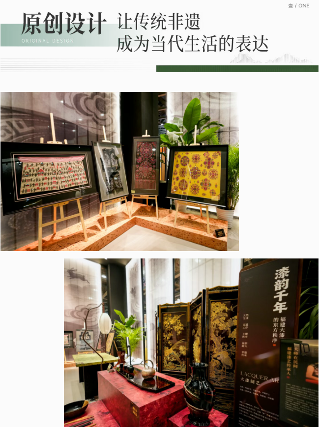 依托福建大漆非遗美学,融合现代材料系统与标准化家居体系,打造“七曜”高定文化系列,将千年漆艺精髓化为空间中的艺术表达;联动新品制造局将巫溪嫁花非遗技艺,以画表意、借物寄情,融入设计推出百福系列产品。非遗由此走出“博物馆里的艺术”,成为可触可感的“家藏之美”,实现传统工艺与当代生活的深度共生。