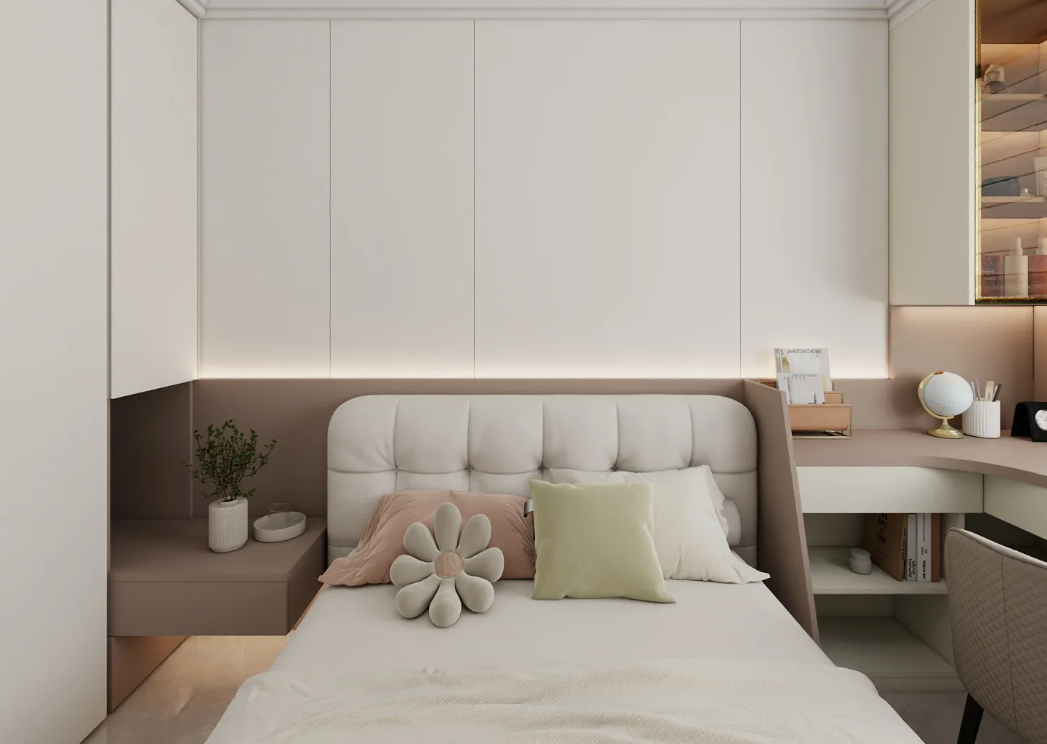 色彩选择:建议以柔和、温馨的浅色调(如米白、浅灰、淡蓝、淡粉)为主基调,有利于稳定情绪,营造宁静氛围。可局部用明亮色彩进行点缀,激发儿童想象力。