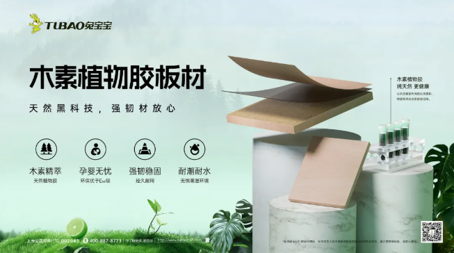 兔宝宝木素植物胶板材不走寻常路,拒绝传统胶黏剂,而是依托生物酶催化技术,从植物中提取高纯度木质素,最大限度保留天然结构,从源头守护家居健康。