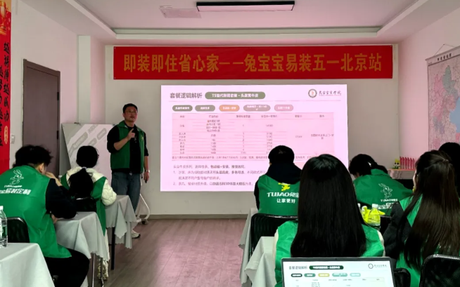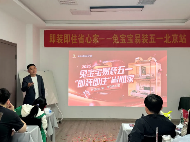 为全面打响兔宝宝易装五一营销攻坚战,4月15日,兔宝宝易装五一活动启动会北京站成功召开。兔宝宝易装运营公司、易装北京加工中心以及北京区域全体经销商伙伴齐聚一堂, 统一作战思想、明确活动目标,共同擘画五一旺季营销蓝图。