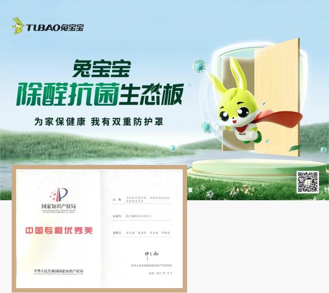 对于专利,兔宝宝的追求从未止步于“量”的积累,而是更加聚焦于“质”的飞跃。凭借卓越的技术实力,公司的多项核心发明专利屡获国家级和省级大奖,充分印证了技术的先进性与实用性。其中,“一种甲醛净化板材及其制备法”“一种功能型重组材”“无机纳米银防霉、抗菌装饰贴面板及其制造方法”等发明专利成功荣膺“中国专利优秀奖”,这一荣誉不仅是对兔宝宝技术创新的高度肯定,更代表了国家层面的认可。更值得一提的是,“一种环保生态板的制备方法”发明专利斩获了首届浙江省知识产权奖二等奖,成为行业内唯一获此级别奖项的专利项目,充分确立了兔宝宝在绿色、环保技术研发与应用领域的绝对话语权和引领者地位。