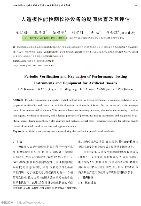 《人造板性能检测仪器设备的期间核查及其评估》(发表于《计量与测试技术》2025年 第6期)▼▼▼