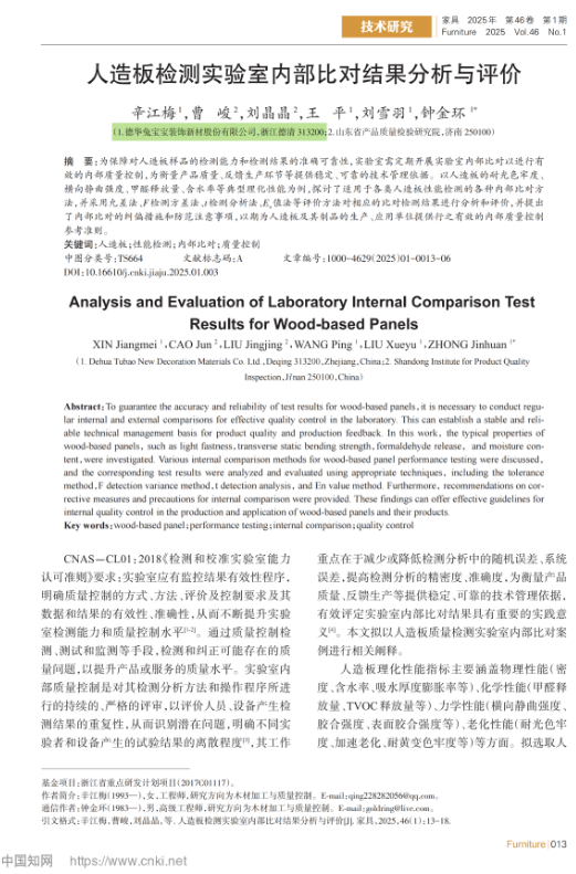 《人造板检测实验室内部比对结果分析与评价》(发表于《家具》2025 第1期)▼▼▼