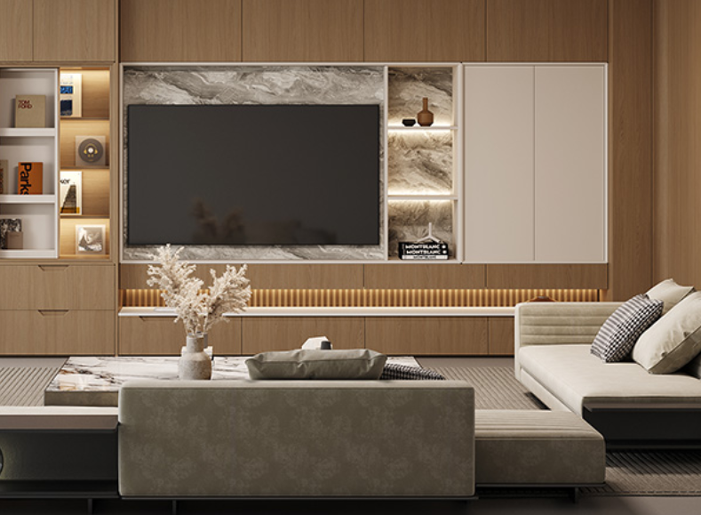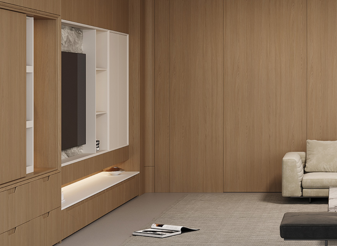 风格统一:兔宝宝全屋定制致力于打破传统装修中橱柜、衣柜、背景墙等产品风格割裂的痛点。通过专业设计师,将柜类定制与墙面系统、配套家具等进行一体化设计,确保整个家居空间在风格、色彩和质感上的和谐统一。