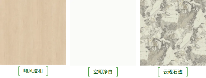 不同于市场上复杂冗余的风格设计,浅屿系列深谙年轻群体“怕翻车、求百搭”的家装痛点,预设黄金花色组合:「屿风澄和」的浅木色温润治愈,「空明净白」的纯净色提亮空间,「云砚石迹」的浅纹理石纹增添质感,三者以“低饱和浅调+无冗余纹理”为核心,轻松搭配出高级感,完美避开“风格堆砌”的装修雷区。