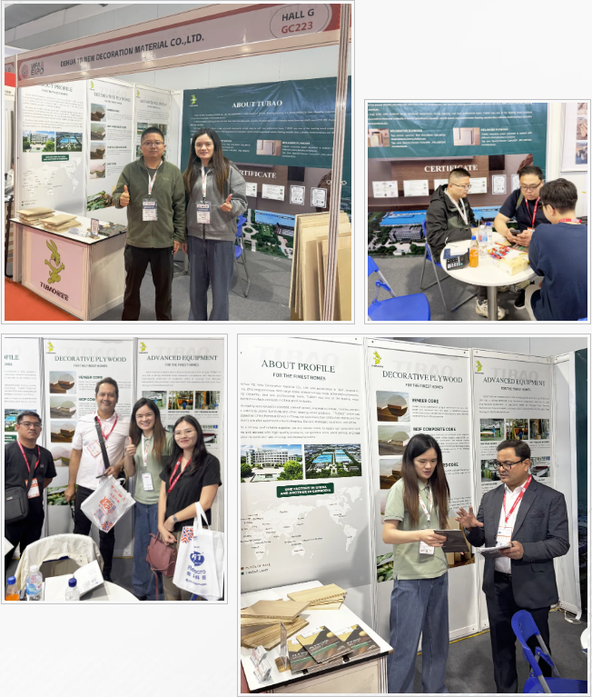 展会期间,兔宝宝展位始终人潮涌动,吸引众多海外客商驻足交流。本次参展,兔宝宝精准对接海外市场需求,带来定制化饰面板产品矩阵,每一款都兼具品质与颜值:黑胡桃饰面板,甄选黑胡桃面皮搭配杨木芯材,天然纹理尽显高端质感;枫木饰面板色泽均匀温润,适配现代简约、北欧等主流家居风格;白橡饰面板美学与实用并存,轻松满足海外多元家居需求。