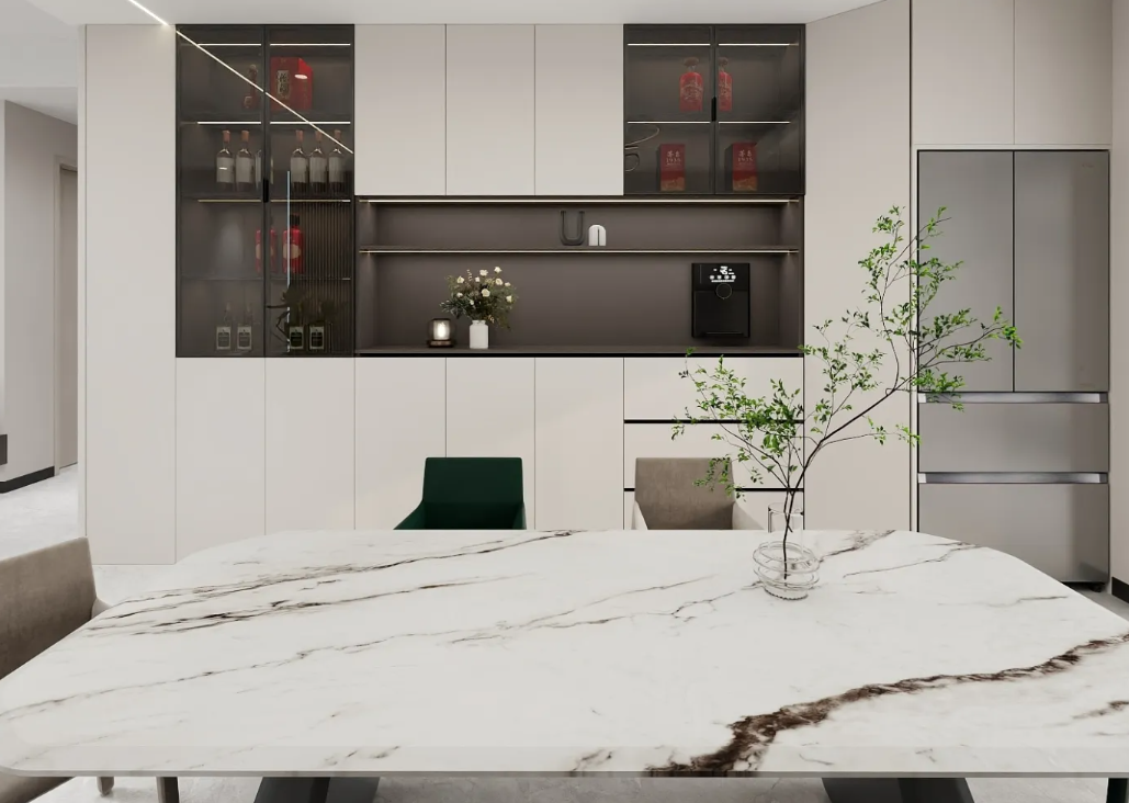 视觉延伸效果:简洁的纵向线条能有效拉升视觉层高,使空间显得更加整洁、大气、现代。
