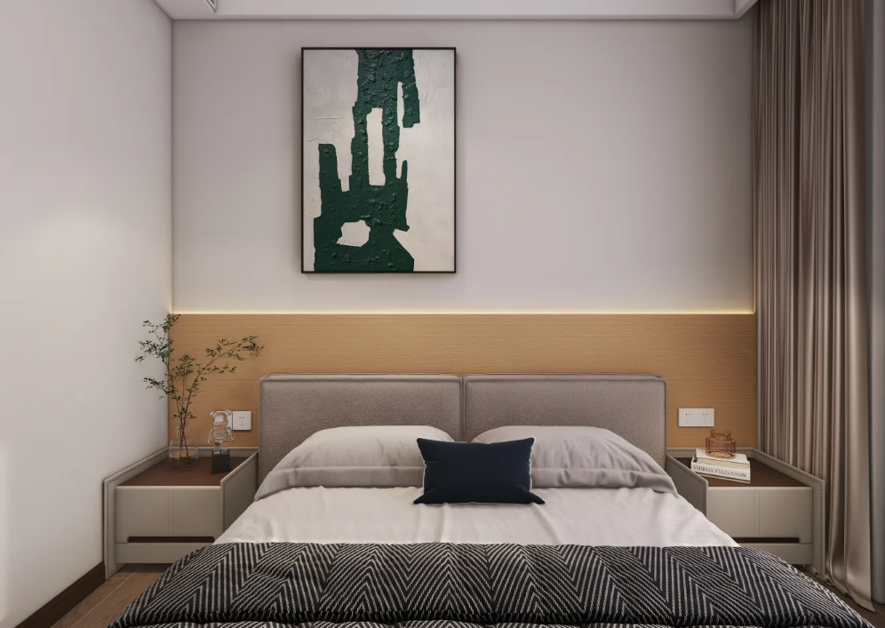 除了衣柜,卧室的定制核心还包括床与床头柜。定制床可结合地台与底部抽屉收纳,节省空间。床头柜可与衣柜、床背板一体化设计,形成视觉连贯性。整体协调设计能营造出极度舒适与和谐的睡眠环境。