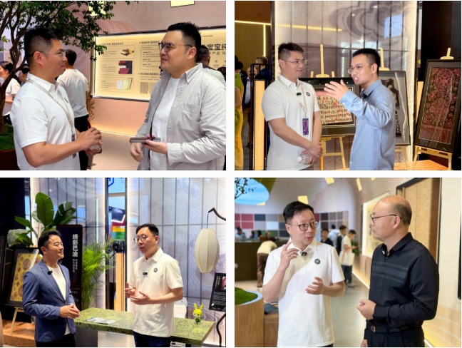 从产品创新到生态构建,从品牌升级到行业协同,每一次交流沟通都是为定制家居行业的发展提供了全新思路。赵建锋总经理带领广东省定制家居协会会员单位代表参观展馆,从产品细节到空间设计,从工艺逻辑到产业布局,逐一阐释兔宝宝如何以材料为原点,为不同规模的定制家居企业提供精准赋能。参观交流间,品牌与行业之间的共识不断凝聚,协同发展的新图景愈发清晰。