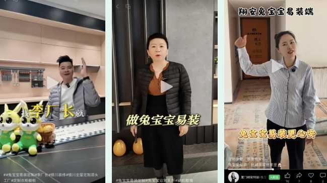 本次短视频大赛以“扩大兔宝宝易装知名度,提升线上声量”为核心目标,面向全国兔宝宝易装定制门店广泛征集作品,号召全体经销商拿起镜头,挖掘品牌价值、展现产品优势、传递家居美学。活动期间,全国各大门店积极响应、踊跃参与,充分发挥创意才华,将兔宝宝易装的环保品质、定制优势与家居场景深度融合,用生动的镜头语言讲述品牌故事、展现门店风采。