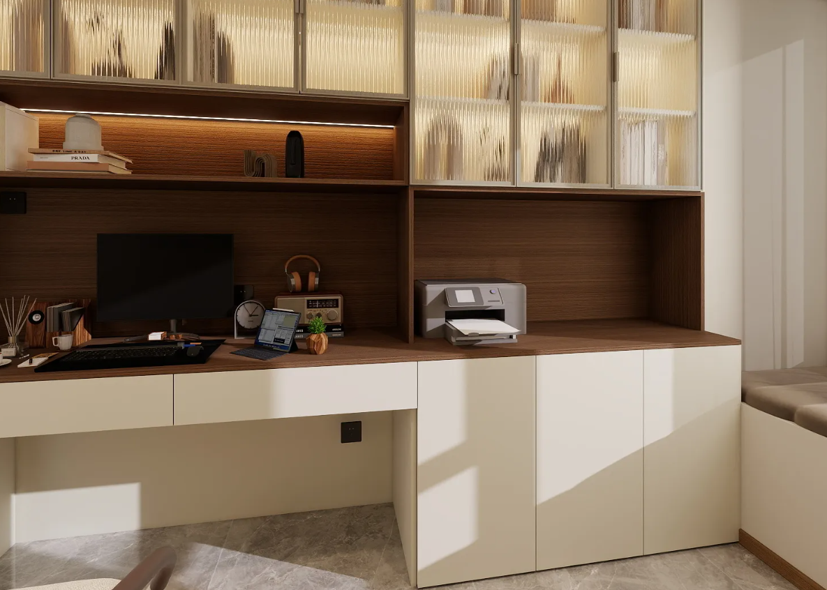木工现场制作(现场定制)的核心是“现场适配”。这种方式的独特之处在于木工师傅根据实际空间现场制作家具,能够精准应对墙体不平、角度不正等建筑不规整问题。此外,师傅可与业主直接沟通,实现高度多功能与实用性设计,如根据业主衣物类型定制衣柜内部结构,或为特殊收藏品设计展示收纳一体柜。