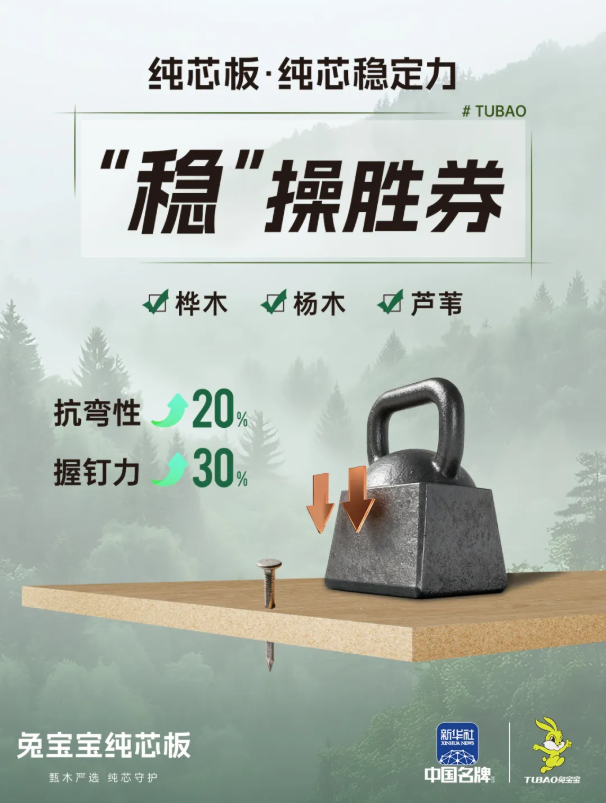 从原料的万里挑一,到工艺的十年磨一剑,再到饰面的美学进化,兔宝宝纯芯板经得起时间与生活的双重检验。面子好,里子更好,才是家的安心之选。