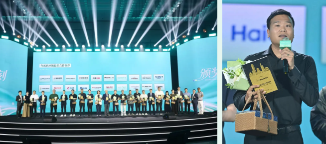 在备受瞩目的颁奖环节,李舰代表兔宝宝上台领奖。他表示:“‘哪里有创艺,哪里就有兔宝宝’,这不仅是一句口号,更是双方携手深耕家装市场的真实写照。”作为创艺集团的战略合作伙伴,兔宝宝始终以“产品优质、服务至上”为核心理念,依托三十余年技术积淀,为装企和终端客户提供环保健康的板材解决方案与定制化服务。未来,兔宝宝将继续发挥品牌优势,与创艺装饰深化协同,从材料供应到定制服务全链路赋能,共同推动家装行业向“环保+定制”的品质化方向升级。
