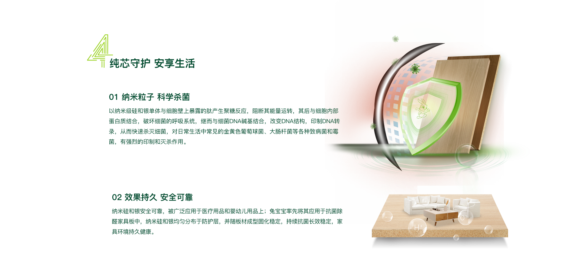 | 纳米科技力 | 通过纳米粒子实现抗菌防霉效果,抗菌率可达99.9% | ||